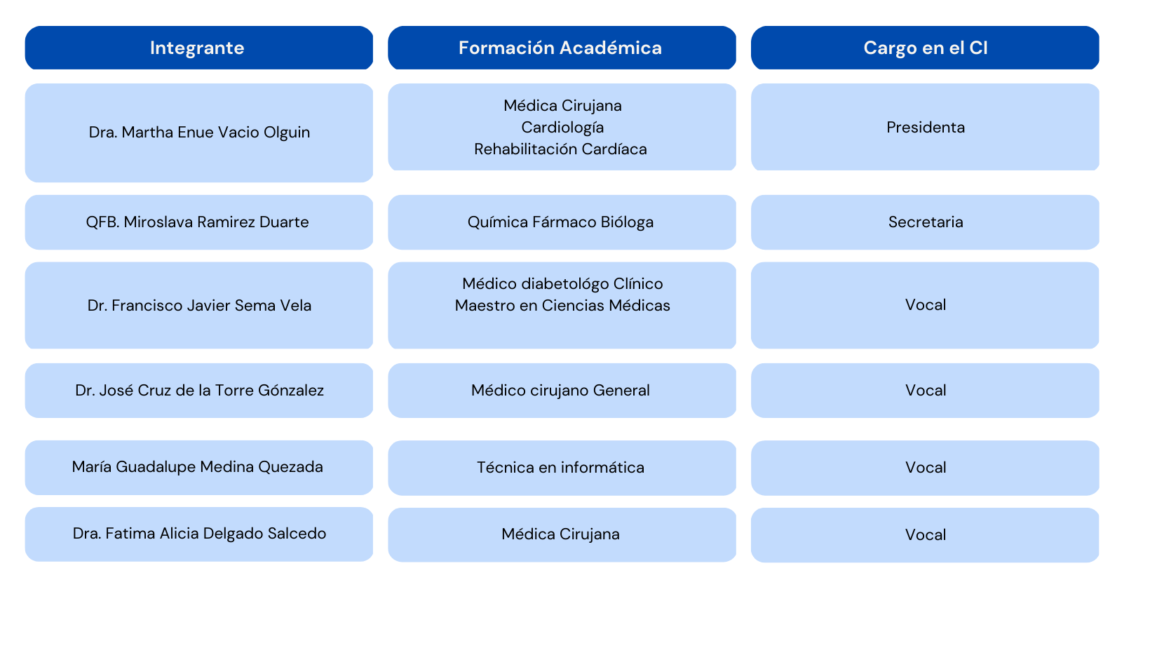 Los miembros cuentan con capacitación de Buenas prácticas clínicas (ICH Good Clinical Practice E6 R2) con el compromiso de realizar los procedimientos operativos y revisiones de los protocolos de manera ética y científica.
